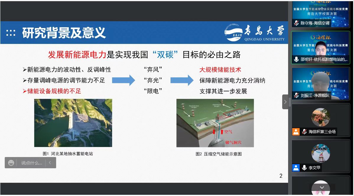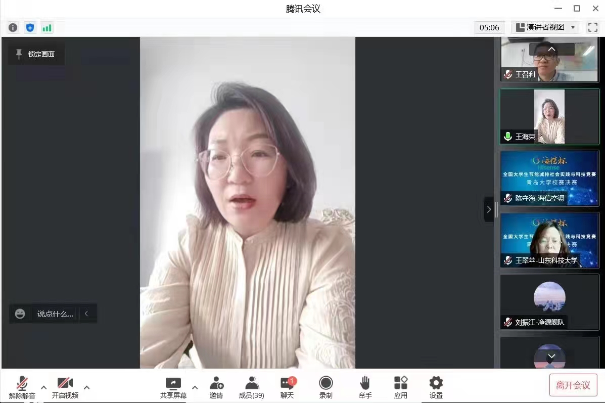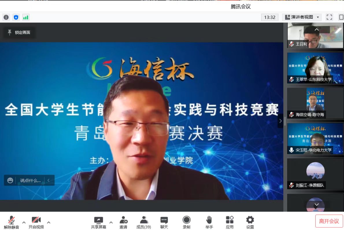 5月14日,由创新创业公司主办、太阳成集团tyc9728承办的“海信杯”第二届太阳成集团tyc9728节能减排社会实践与科技竞赛决赛在线上顺利举行。大赛邀请了来自山东大学、天津大学、华北电力大学(北京)、中国石油大学(华东)、山东科技大学、海信集团等高校、企业专家担任评委。