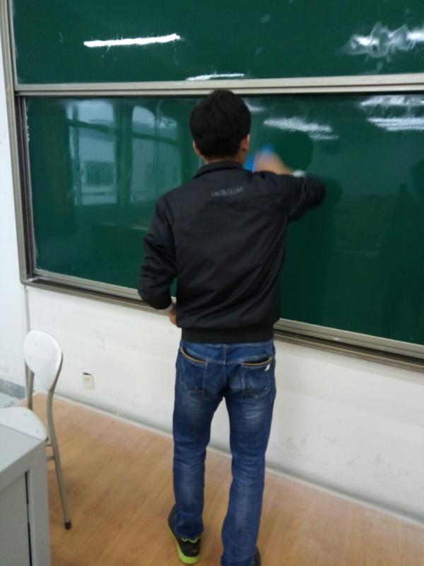志愿者们分工合作,相互配合,用自己准备好的抹布,把一教、二教、图文中心所有教室的黑板、讲台、多媒体机箱等擦得干干净净,为师生提供了更加舒适的学习环境。