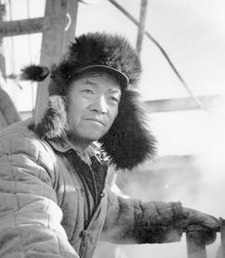 1960年3月王进喜带领1205钻井队从玉门来到大庆。他带领全队把60多吨重的钻机设备化整为零,采用人拉肩扛的办法把钻机和设备从火车上卸下来,运到马家窑附近的萨55井,安装起来。由于水管线还没接通,罐车又少,王进喜就带领工人到附近水泡子破冰取水,用脸盆端了50多吨水,保证萨55井正式开钻。饿了,啃几口冻窝窝头;困了,裹着老羊皮袄打个盹……通过全队工人的共同努力,只用了5天零4个小时就打完了油田上第一口生产井。