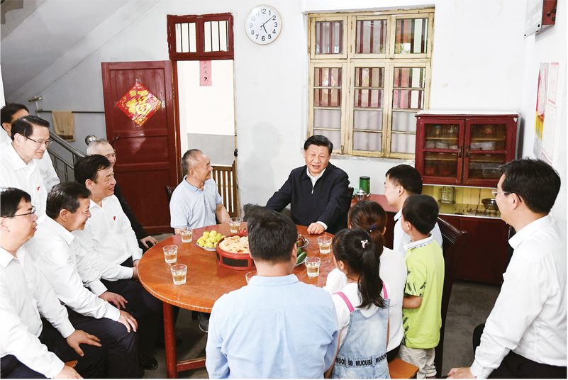 2019年5月20日至22日,中共中央总书记、国家主席、中央军委主席习近平在江西考察,主持召开推动中部地区崛起工作座谈会并发表重要讲话。这是习近平在红军烈士后代、退伍军人孙观发家,同孙观发一家和当地镇、村干部拉家常,详细了解老区人民生产发展和生活改善等情况。 新华社记者 谢环驰/摄
