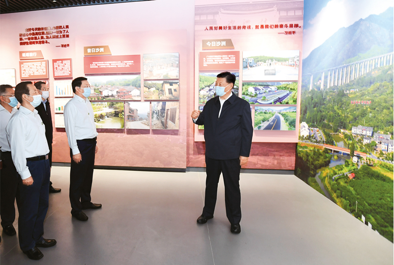 2020年9月16日至18日,中共中央总书记、国家主席、中央军委主席习近平在湖南考察。这是16日下午,习近平在郴州市汝城县文明瑶族乡沙洲瑶族村“半条被子的温暖”专题陈列馆,了解当地加强基层党的建设、开展红色旅游和红色教育情况。 新华社记者 谢环驰/摄