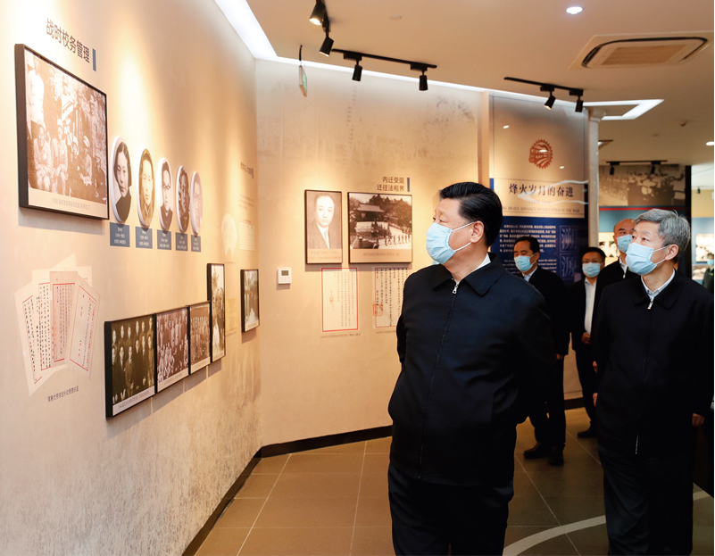 2020年4月20日至23日,中共中央总书记、国家主席、中央军委主席习近平在陕西考察。这是4月22日,习近平在西安交通大学交大西迁博物馆参观。 新华社记者 鞠鹏/摄