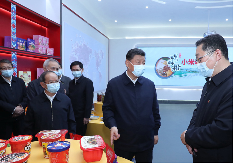 随后,习近平来到柳州螺蛳粉生产集聚区,详细了解螺蛳粉特色产业促进就业、带动农民增收等情况。习近平指出,发展特色产业是地方做实做强做优实体经济的一大实招,要结合自身条件和优势,推动高质量发展。要把住质量安全关,推进标准化、品牌化。要帮助民营企业解决实际困难,鼓励、支持、引导民营企业发展壮大。