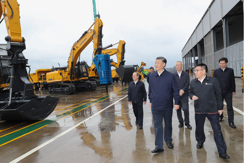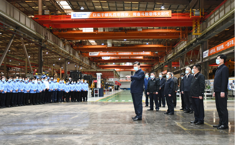 当天下午,习近平来到柳州市考察调研。在广西柳工集团有限公司,习近平先后走进公司展厅、研发实验中心、挖掘机装配厂等,听取企业发展情况介绍,察看主要产品展示,同企业职工和技术研发人员亲切交谈。习近平强调,制造业高质量发展是我国经济高质量发展的重中之重,建设社会主义现代化强国、发展壮大实体经济,都离不开制造业,要在推动产业优化升级上继续下功夫。只有创新才能自强、才能争先,要坚定不移走自主创新道路,把创新发展主动权牢牢掌握在自己手中。要坚持党对国有企业的全面领导,坚持加强党的领导和完善公司治理相统一,在深化企业改革中搞好党的建设,充分发挥党组织在企业改革发展中的领导核心作用。