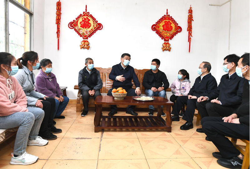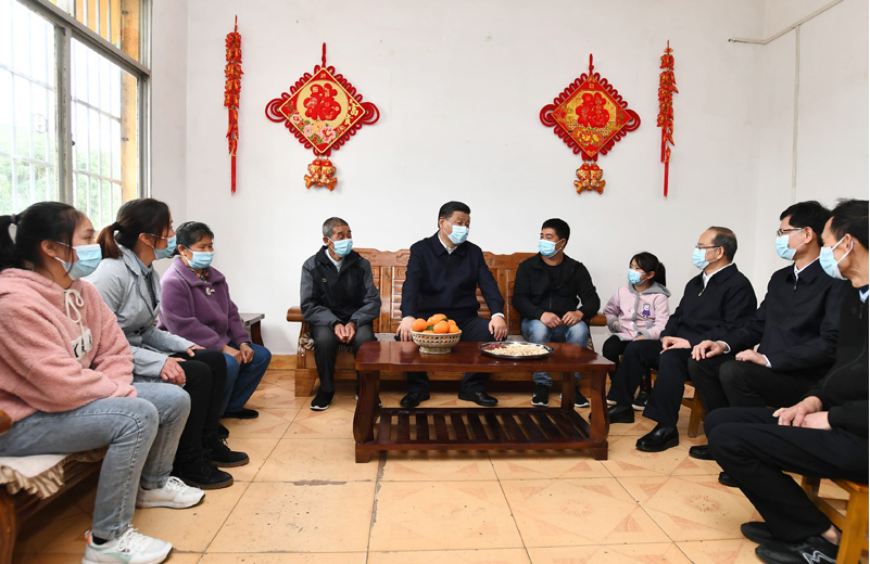 4月25日至27日,中共中央总书记、国家主席、中央军委主席习近平在广西考察。这是25日上午,习近平在桂林市全州县才湾镇毛竹山村村民王德利家中看望,同一家人围坐在一起聊家常。新华社记者 谢环驰 摄