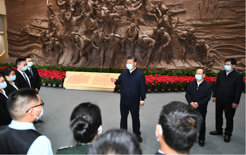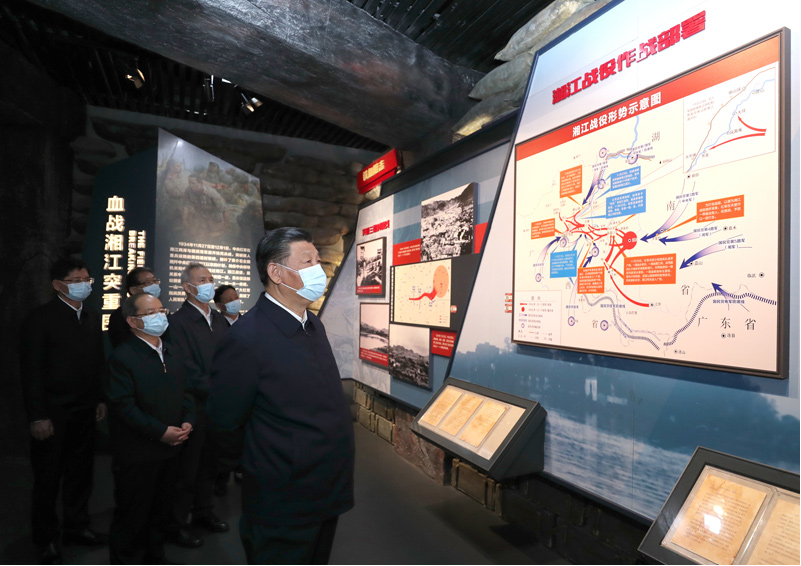 4月25日至27日,中共中央总书记、国家主席、中央军委主席习近平在广西考察。这是25日上午,习近平在桂林市全州县,参观红军长征湘江战役纪念馆。新华社记者 鞠鹏 摄