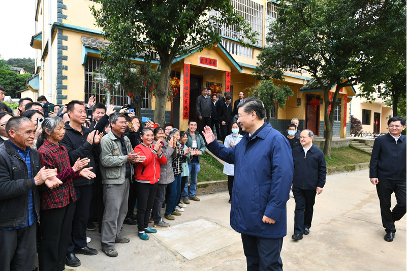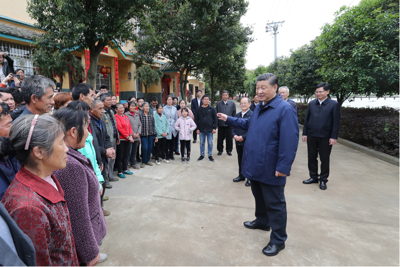 4月25日至27日,中共中央总书记、国家主席、中央军委主席习近平在广西考察。这是25日上午,习近平在桂林市全州县才湾镇毛竹山村考察时,同乡亲们亲切交流。新华社记者 鞠鹏 摄
