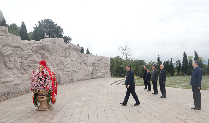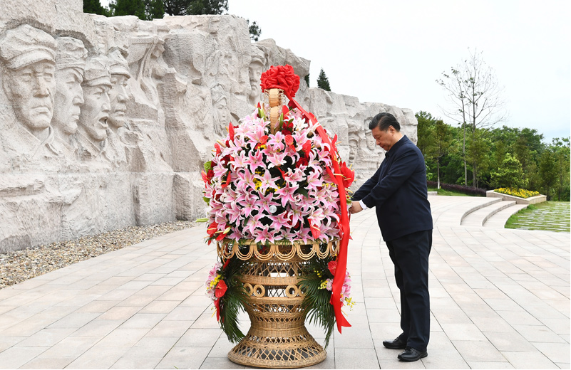 4月25日至27日,中共中央总书记、国家主席、中央军委主席习近平在广西考察。这是25日上午,习近平在位于桂林市全州县的红军长征湘江战役纪念园,向湘江战役红军烈士敬献花篮。新华社记者 鞠鹏 摄
