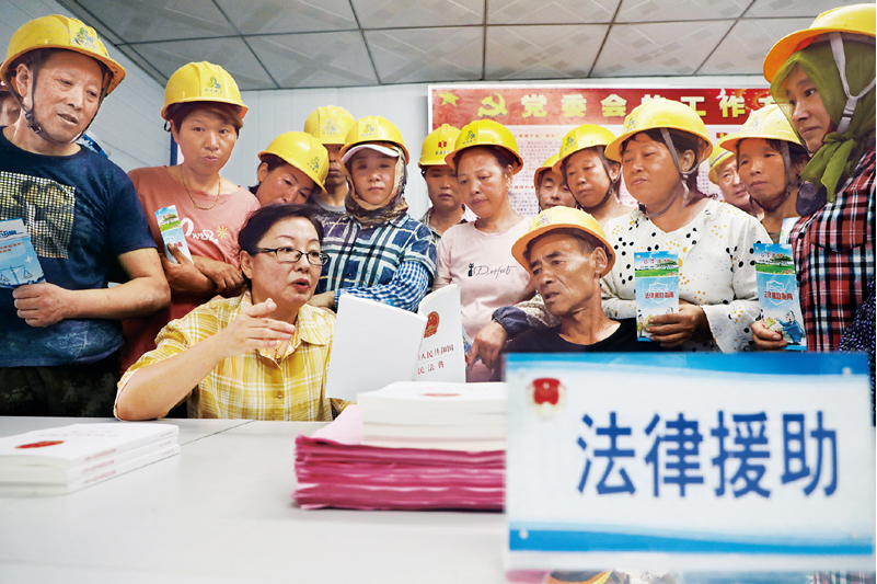 2020年8月26日,河北省唐山市丰润区司法局组织律师走进社区、工地,为群众提供免费法律援助。 人民图片 朱大勇/摄