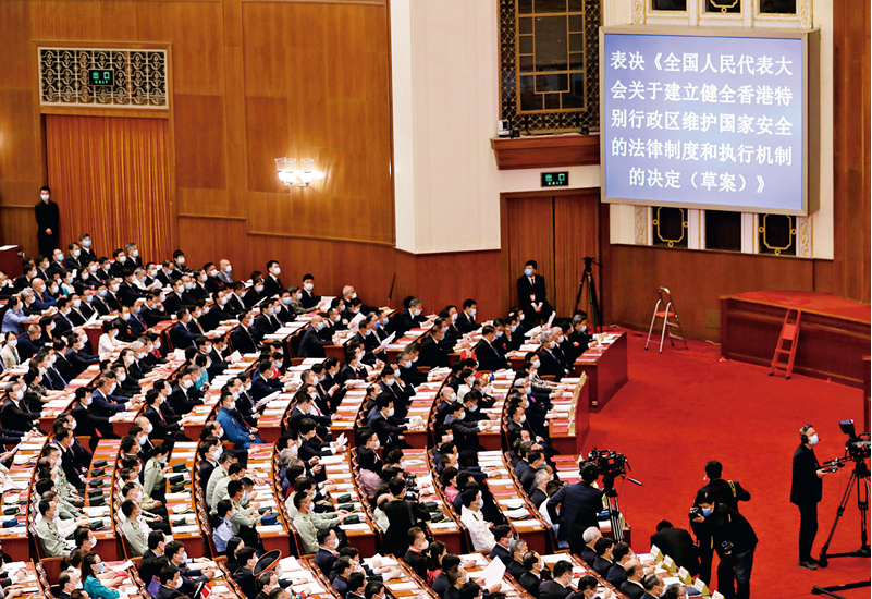 2020年5月28日,十三届全国人大三次会议高票通过《全国人民代表大会关于建立健全香港特别行政区维护国家安全的法律制度和执行机制的决定》。 新华社记者 丁海涛/摄