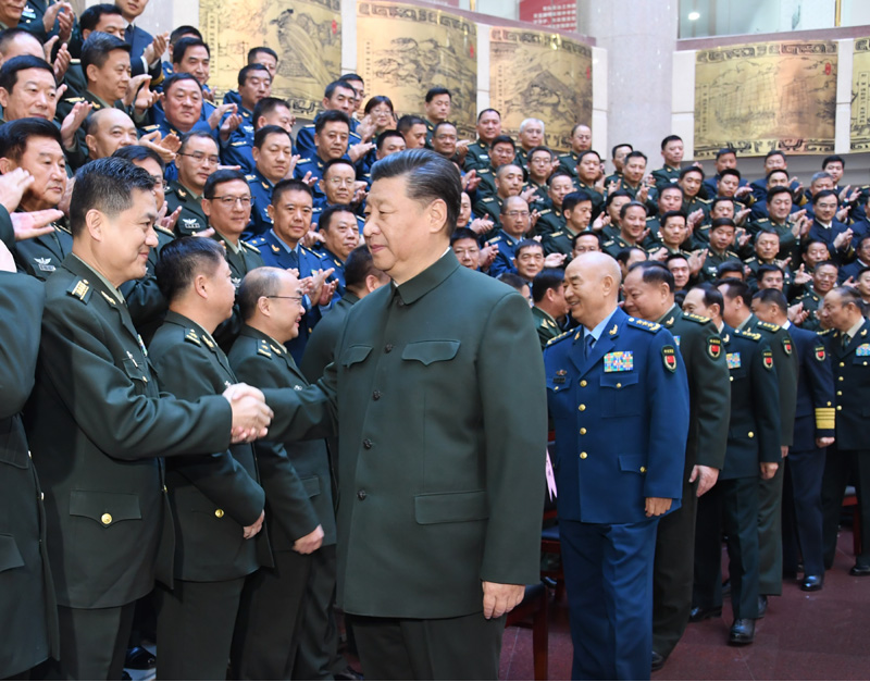 上午10时30分许,习近平来到国防大学。在热烈的掌声中,习近平亲切接见集训班全体学员,同大家合影留念。