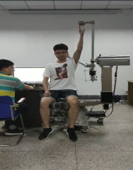 王钰教授创新性的提出两种新型的上肢康复机器人结构,分别为多功能上肢关节肌肉康复机器人和悬臂式上肢神经康复机器人。多功能上肢关节肌肉康复机器人采用三自由度结构,拥有最大的外展、外旋和前屈运动空间,采用肩关节自对齐系统,动态响应人体肩关节在运动时的位置变化。采用了模块化设计,展臂部分可以进行外骨骼模组和简单臂模组的切换,即可进行上肢外骨骼机器人与上肢肌肉关节机器人的切换,分别进行神经康复训练和肌肉关节康复。 多功能上肢关节肌肉康复机器人拥有“等速运动模式,等张力模式,被动运动模式”等康复运动模式,主要针对上肢肌肉关节损伤的上肢病患,以及处于二级康复后期和三级康复时期的脑卒中后遗症患者,可以进行人体肌力测试,对肌肉关节康复有显著的效果。
